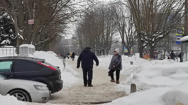Страна должна знать своих героев! Пожилая пара, решив сократить по тротуару (ул. Егорова), была наказана бетонной полусферой.