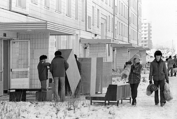 Переезд в новую бесплатную квартиру, которую получили на предприятии. Помните времена?